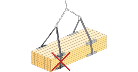 - Use wide, clean straps during crane lifts and protect the edges of the glulam with angled brackets or other edge protection, so that no lift marks occur.