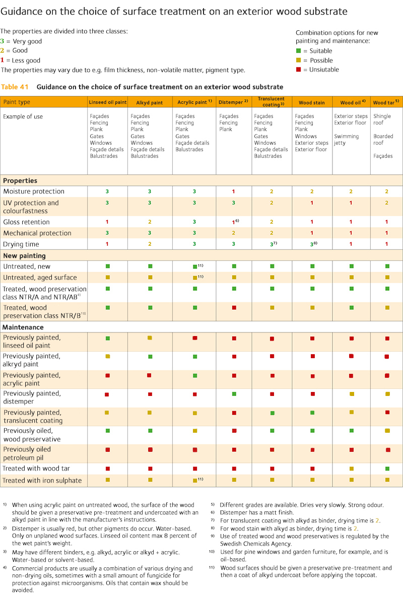 Guidance on the choice of surface treatment on an exterior wood substrate
