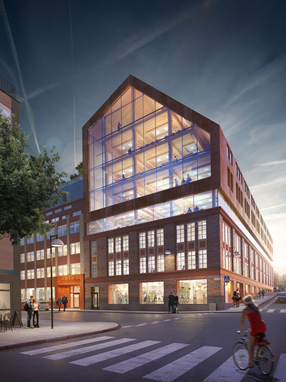 Trikåfabriken is a5-storey extension to an old factory from The parking garage Ekorren in Skellefteå, three storeys for parking on top of the stores. The floors are covered with polyuretan. By AIX Architects and Plusshus. 1920 in Stockholm. By Tengboms.