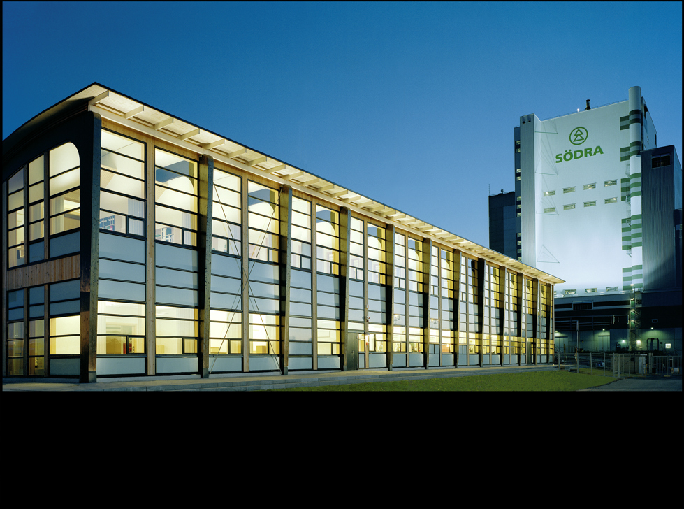 Värö bruk, a center for research and development for Sodra actually consists of two wooden volumes with a glased ceiling between them. By Arkitektbolaget and Skanska.