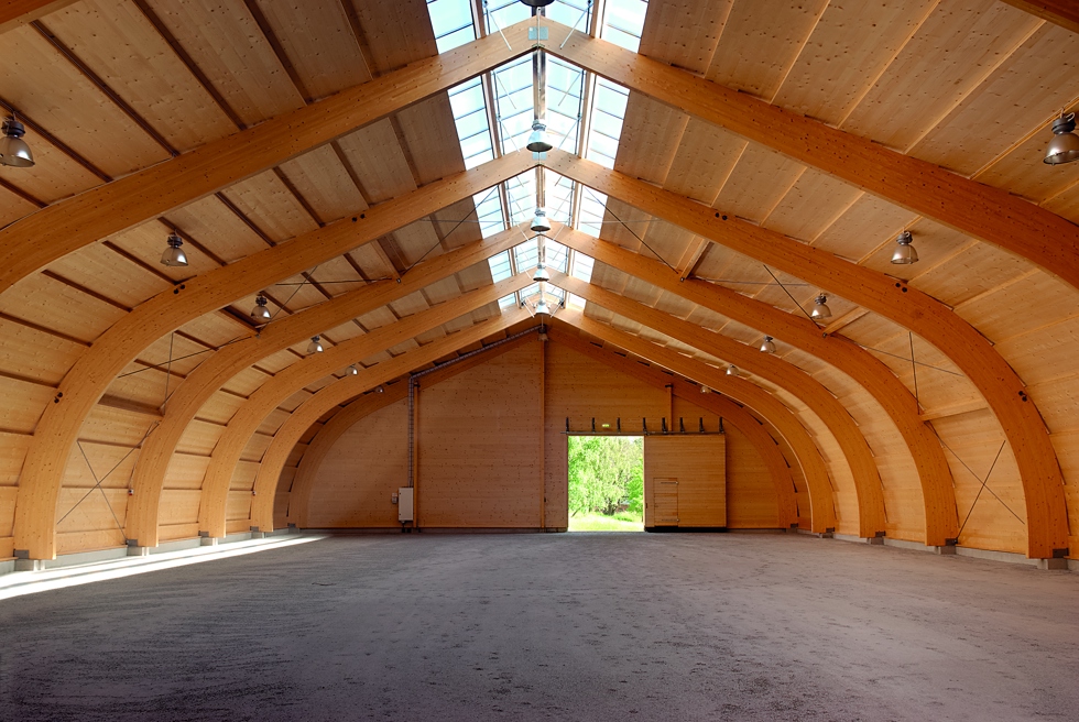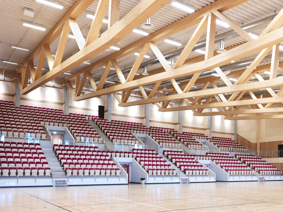 A comparison with steel and concrete shows that structural timber has a strength to weight ratio 20 per cent higher than structural steel and four to five times higher than non-reinforced concrete in compression. This strength can come to good use in sports halls that often need a great roof span to accommodate different needs and activities. Wood can provide sufficient strength to the structure, even though the long beams are subject to massive pressure.