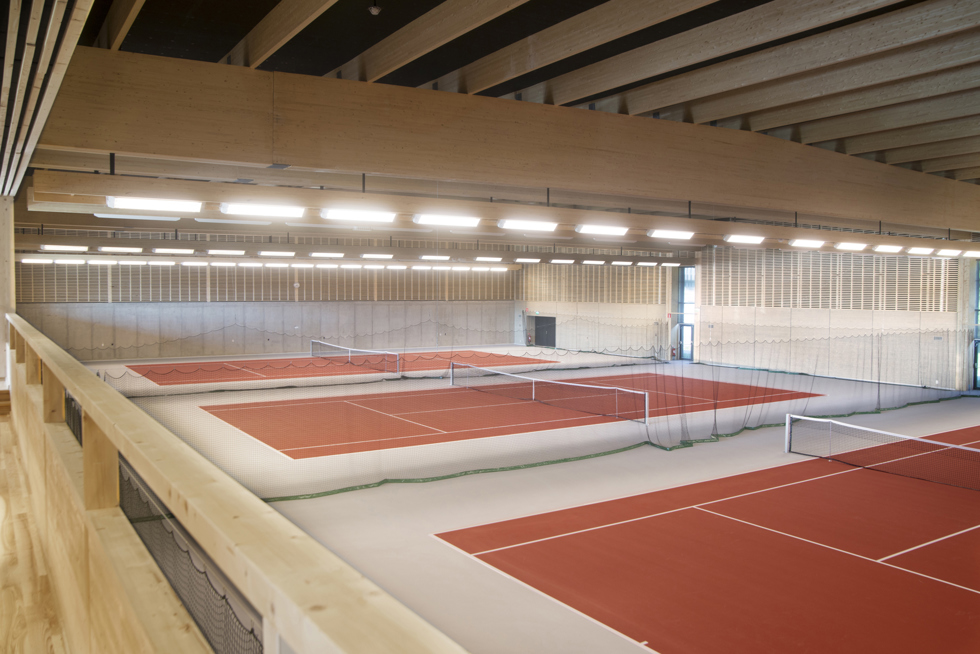 Södra Climate Arena in Växjö is a indoor tennis arena with a glulam post and beam structure by architect Kent Pedersen.