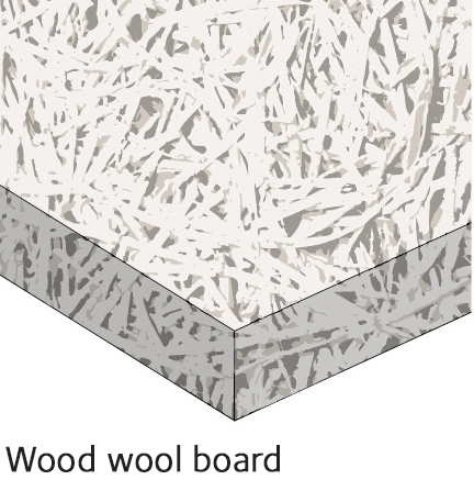 Wood wool boards are described according to their use, colour and the structure of the board’s face, e.g. ceiling, white, fine-planed.