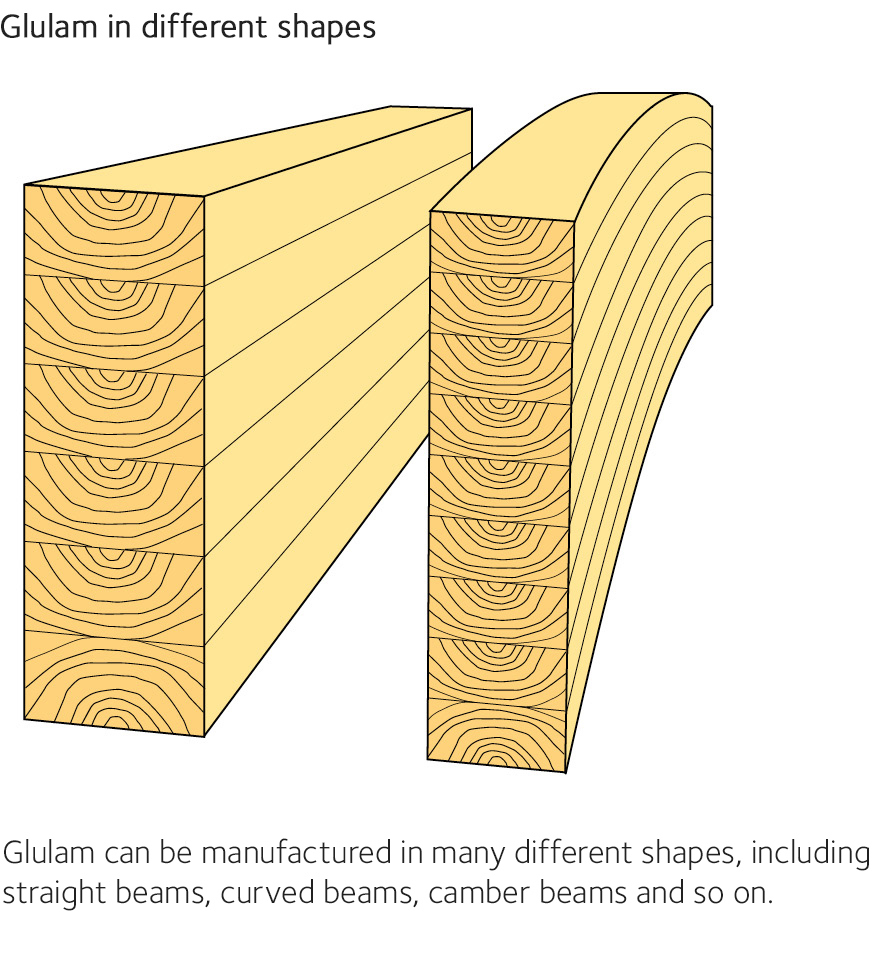 A glulam element comprises a number of laminates (boards) made from construction timber. There is only a very small risk of strength-reducing defects in several laminates occurring in the same cross-section. The wood laminates are also strength-graded and the strongest laminates are placed in the outer zones, where the stresses are normally greatest.