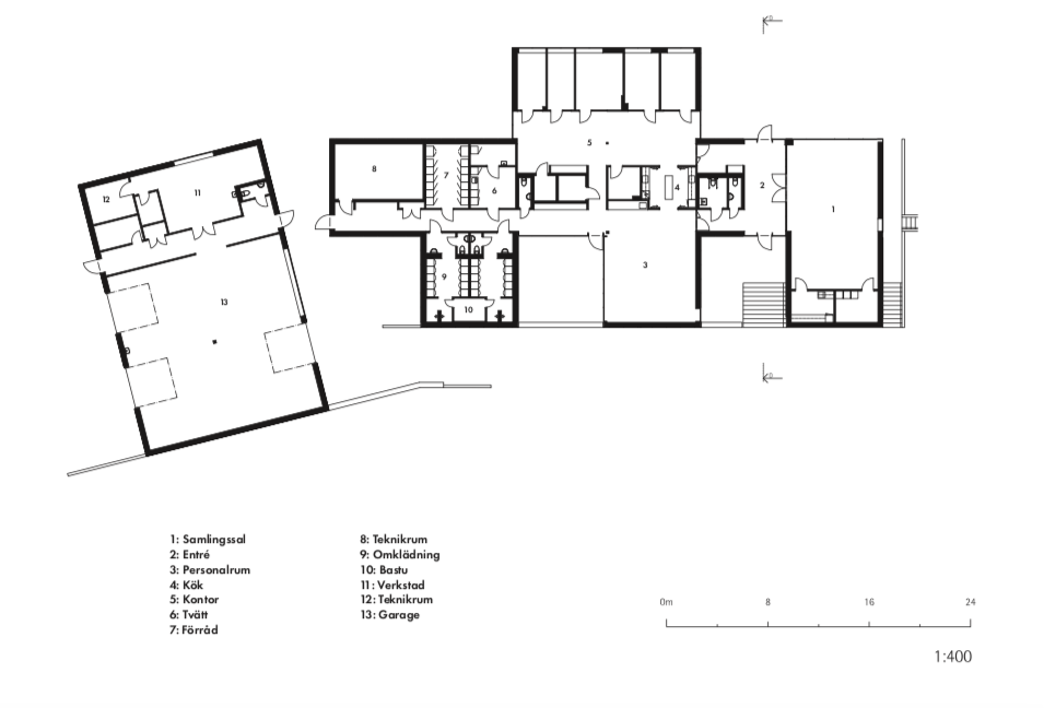 The interior is organised to perfectly fulfil the building’s intentions and requirements. Robust workshop space combines with offices, an intimate garden room and a place of worship, weaving the profane and the spiritual together. The feel and beauty of wood envelops us in the ceilings, walls and floors.
