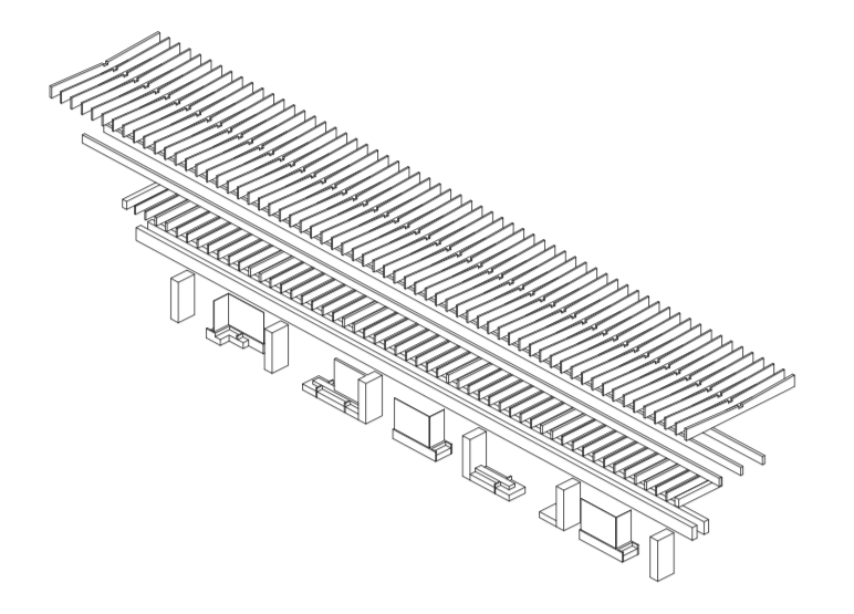 The sturdy glulam beams expand outwards and define the site through the repeated stacking of identical wooden elements. There is something mystical about its appearance – solid but with a balanced lightness of touch. Natural light filters through the wooden frame down to the core of the structure, where passengers can sit and wait in close contact with the wood. The place takes on an identity all of its own in the interplay between person and wood.