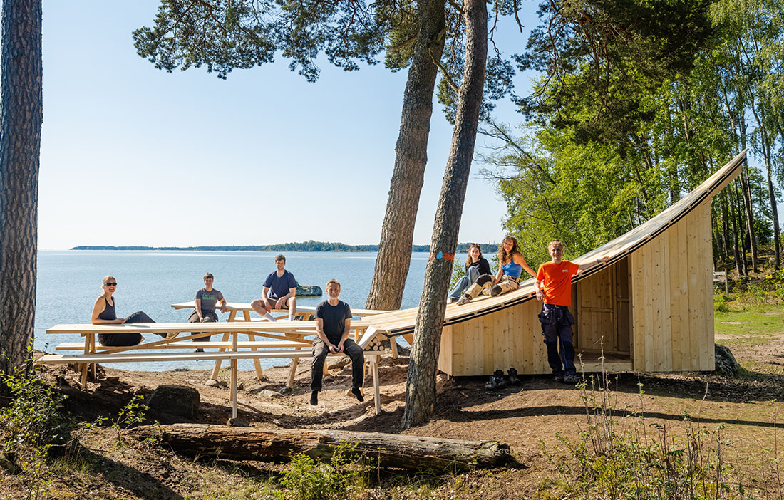 Outside Nyköping, five architecture students have built a lean-to shelter that also functions as a gathering point and playground.