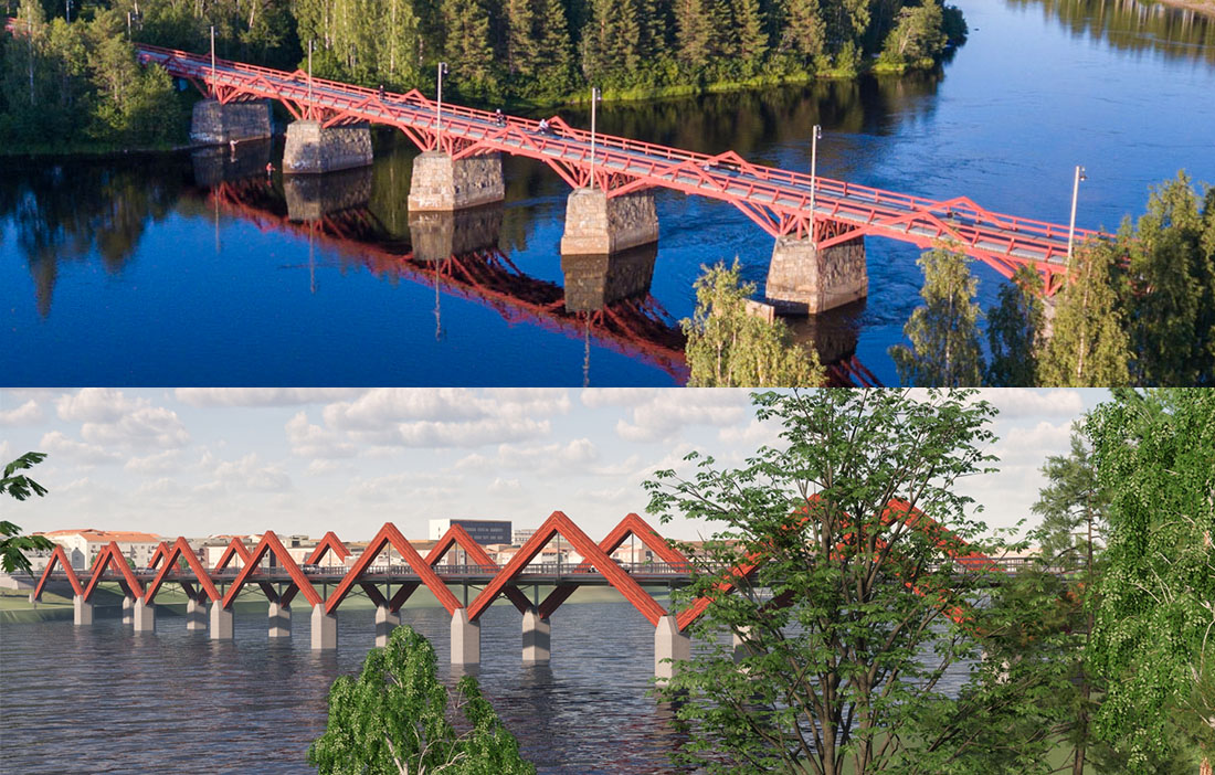 Sweden’s longest timber bridge is now being built across the Skellefteå River.