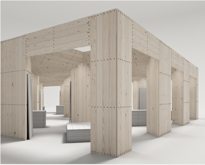 Each of the six apartments will be rehabilitated by duos of forward-thinking brands and designers committed to sustainability. Beckmans College of Design Stockholm will design one of the apartments with parts in swedish pine.
