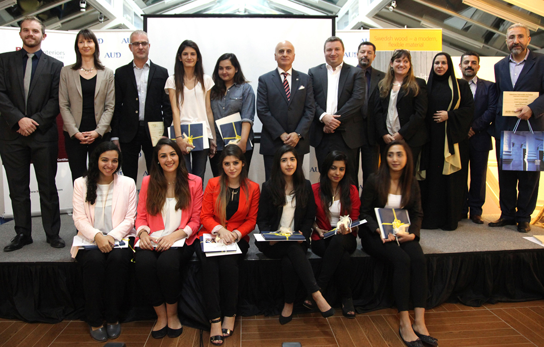 The judging panel also comprised Erik Belfrage, Project Coordinator at Swedish Wood, Nabyl Chenaf, Dean of the School of Architecture, Art and Design at AUD, and Farida Kamber Al Awadhi, President of APID, the Association of Professional Interior Designers.