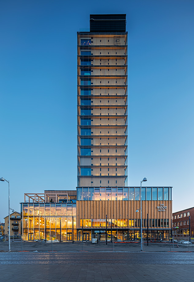 David Åberg was quick to accept the job of managing The Wood Hotel. He sees it as a dream project and looks forward to creating inspiring experiences for the hotel’s guests, with the building itself playing an important role in that. Our aim is to offer our guests one of the world’s most sustainable hotel experiences, and naturally the material is a key factor, affecting both the quality of the accommodation and how a stay leaves our guests feeling. Personally, I find a different kind of calm in our 205 hotel rooms that are made entirely in wood. They provide a warm embrace and superb acoustics.«