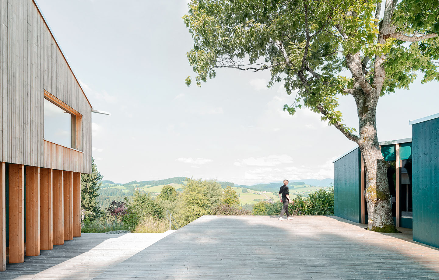 »The design is intended to offer variety – you can bask in the sun out on the terrace and relax after a sauna, or you can sit in the shade or under the roof of the main building,« says Benedikt Bosch.