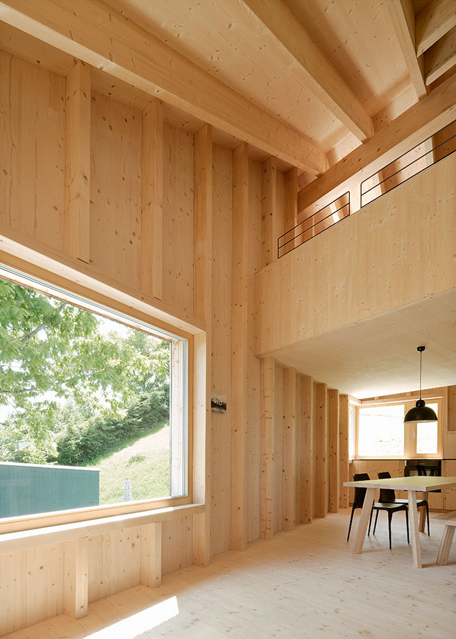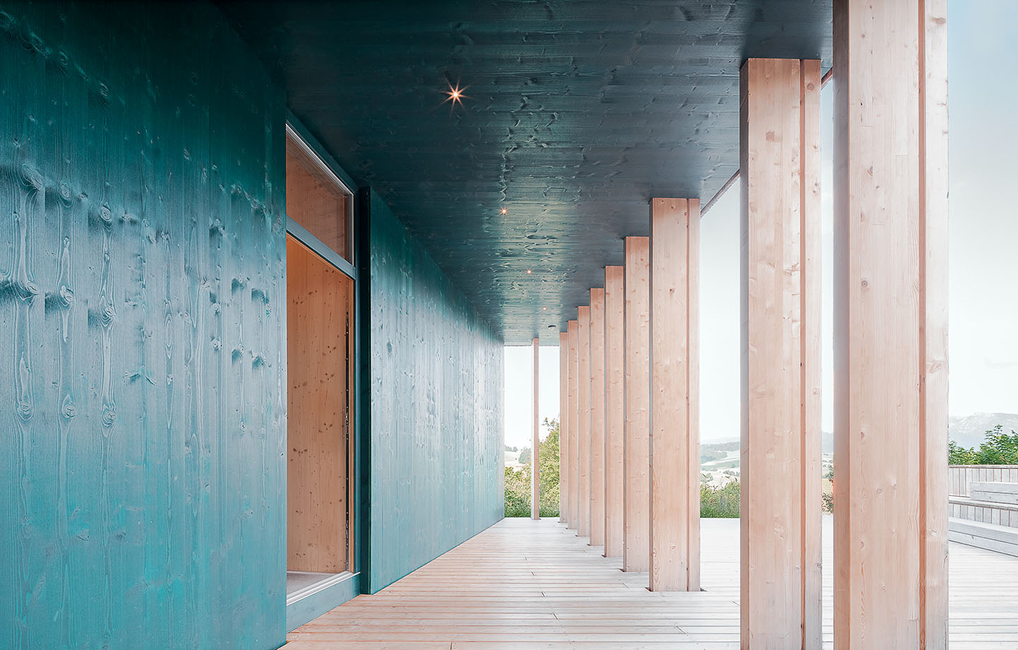»Our idea for the first phase was to just build the top floor and have it raised on stilts, a little like the hunting towers they have in the area. Later, in phase 2, we would close up the lower part of the building by completing the remaining floors below the top one. However, the local authority rejected this design. What they saw was a tall tower that they felt didn’t fit in with the rest of the village,« explains Katja Knaus, architect and co-founder of Studio Yonder along with architect Benedikt Bosch.