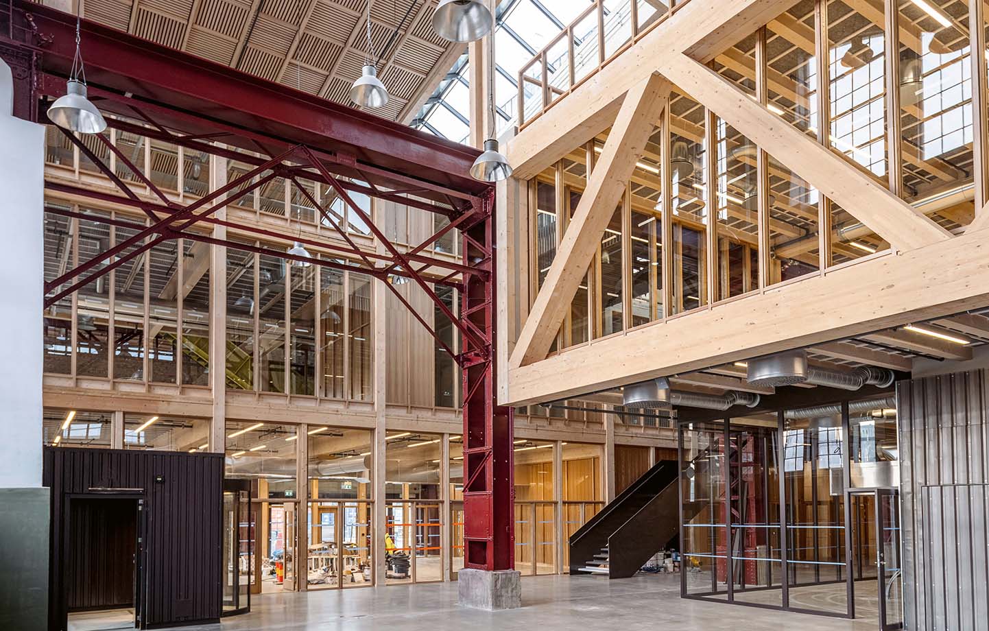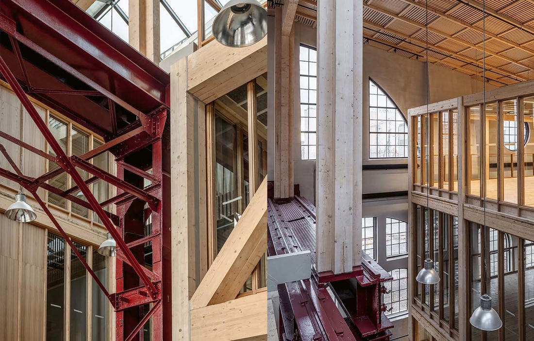 »There is a similarity between wood and steel in the sense that the materials can be exposed and load-bearing at the same time. Wood, like steel, has both a strength and a lightness to its appearance, and we think the existing steel frame and the new timber one work very well together, technically and aesthetically,« Johan Pitura continues.