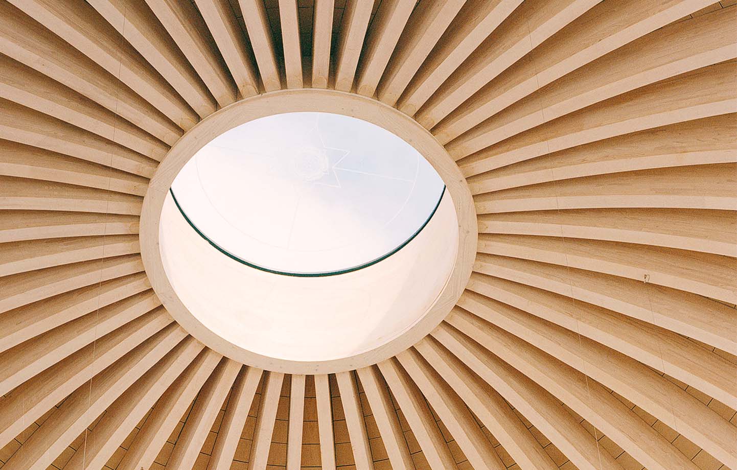 The construction of the temple coincided with both the COVID-19 pandemic and the aftermath of Brexit, which had cost implications for the build. It was difficult to keep tradesmen on site at the price procured before the pandemic struck, and costs escalated rapidly. To avoid the risk of having to buy much more expensive timber as a result of Brexit, the timber was ordered well before the start of construction, a gamble that paid off in the end despite the cost of storage. What is more, the slowdown of many construction projects had at least one upside: highly skilled people were available to erect the frame, with such professional knowledge reflected in the built result.