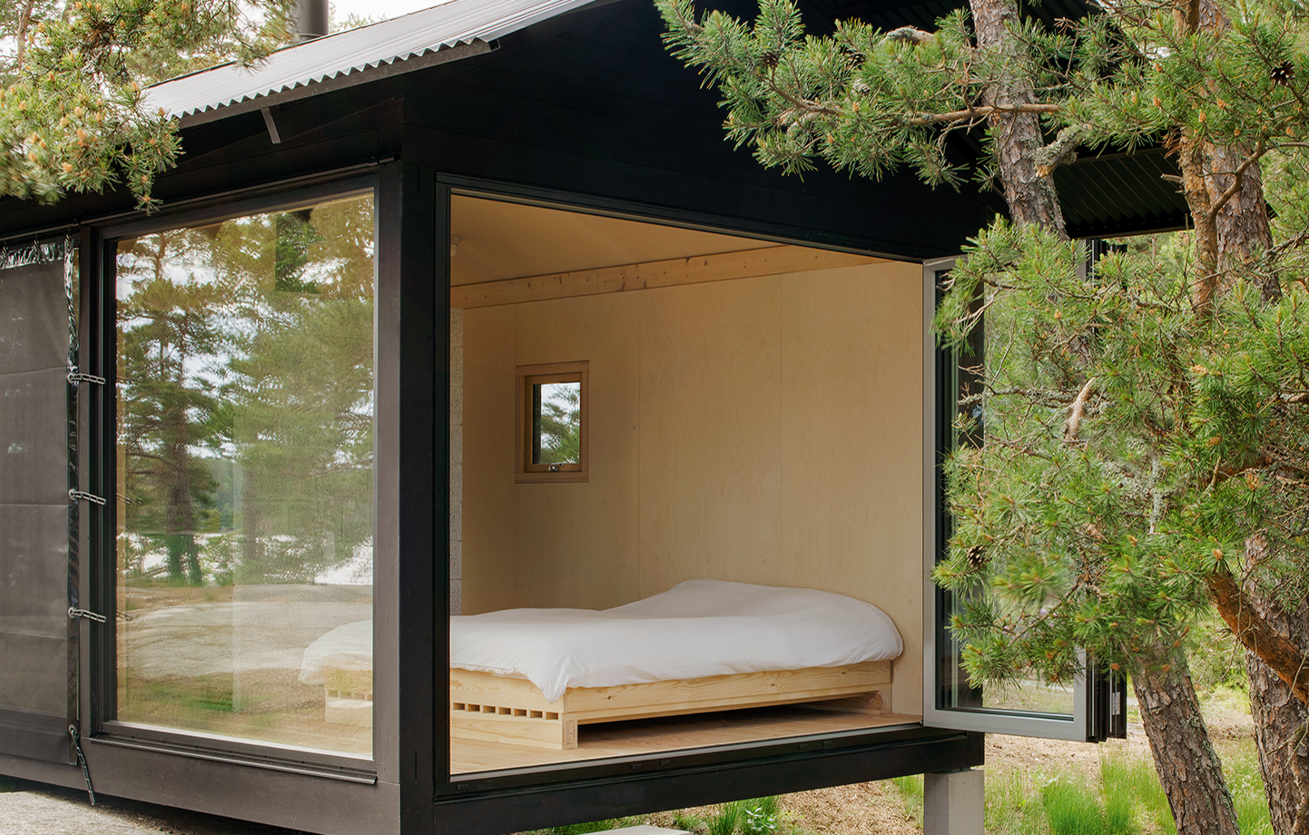 On an island in the Stockholm archipelago sits a small, discreet holiday home. The sturdy façade is painted with dark distemper to blend in with the landscape, and inside is a light interior with birch plywood walls and ceilings, Douglas fir floors and pine window frames, all treated with hardwax oil to provide a hardwearing finish.