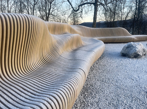The site-built glulam frame determined the dimensions and elements of the single space in the house, but the kitchen, bedroom and living room areas are clearly zoned. While the solid west façade gives the home a sense of privacy, the other sides are made up of generous windows, with both gables fully openable for additional light and airflow.
