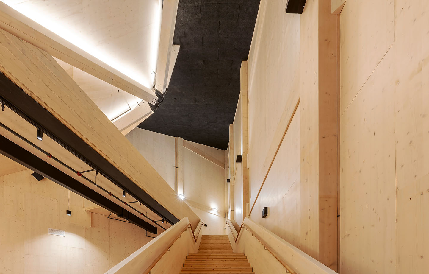 And wherever you go in the new building, you are embraced by wood, not only visually but also through the inviting scent.