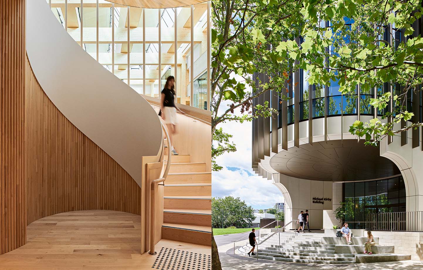 Today, the Michael Kirby Building stands proudly on the site. This magnificently transparent 8,500 square metre edifice, built primarily in mass timber and glass, is named after the law school’s first chancellor emeritus, who was also a member of the Australian Supreme Court.
