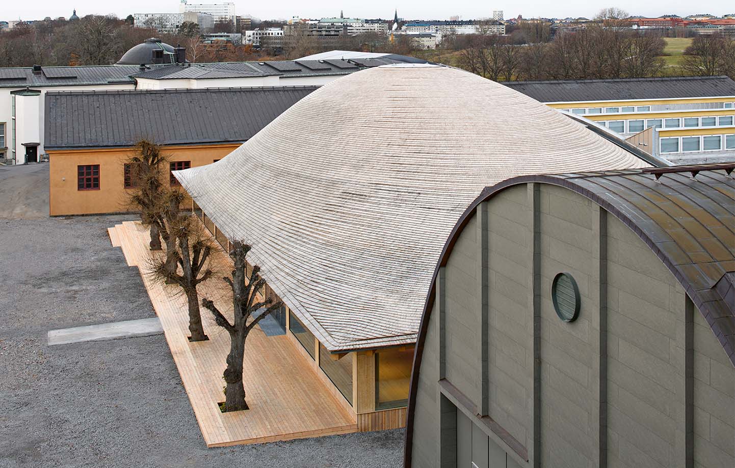 »The most obvious solution would have been to have the dome protruding from a lower volume, but to create a sense of expectation inside and an interesting external shape, we chose to place the freestanding dome indoors instead. Now the wooden hall and the dome can be used independently, and if the dome stops being relevant in the future, it can be dismantled without affecting the hall,« explains Johan Oscarson, architect at Elding Oscarson.