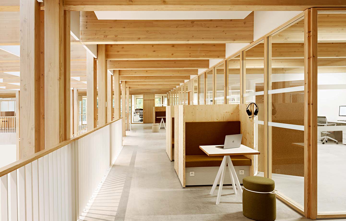 »Having wood inside the building creates warm and tranquil spaces. It’s a really lovely atmosphere to work in,« emphasises Philippe Croisier.