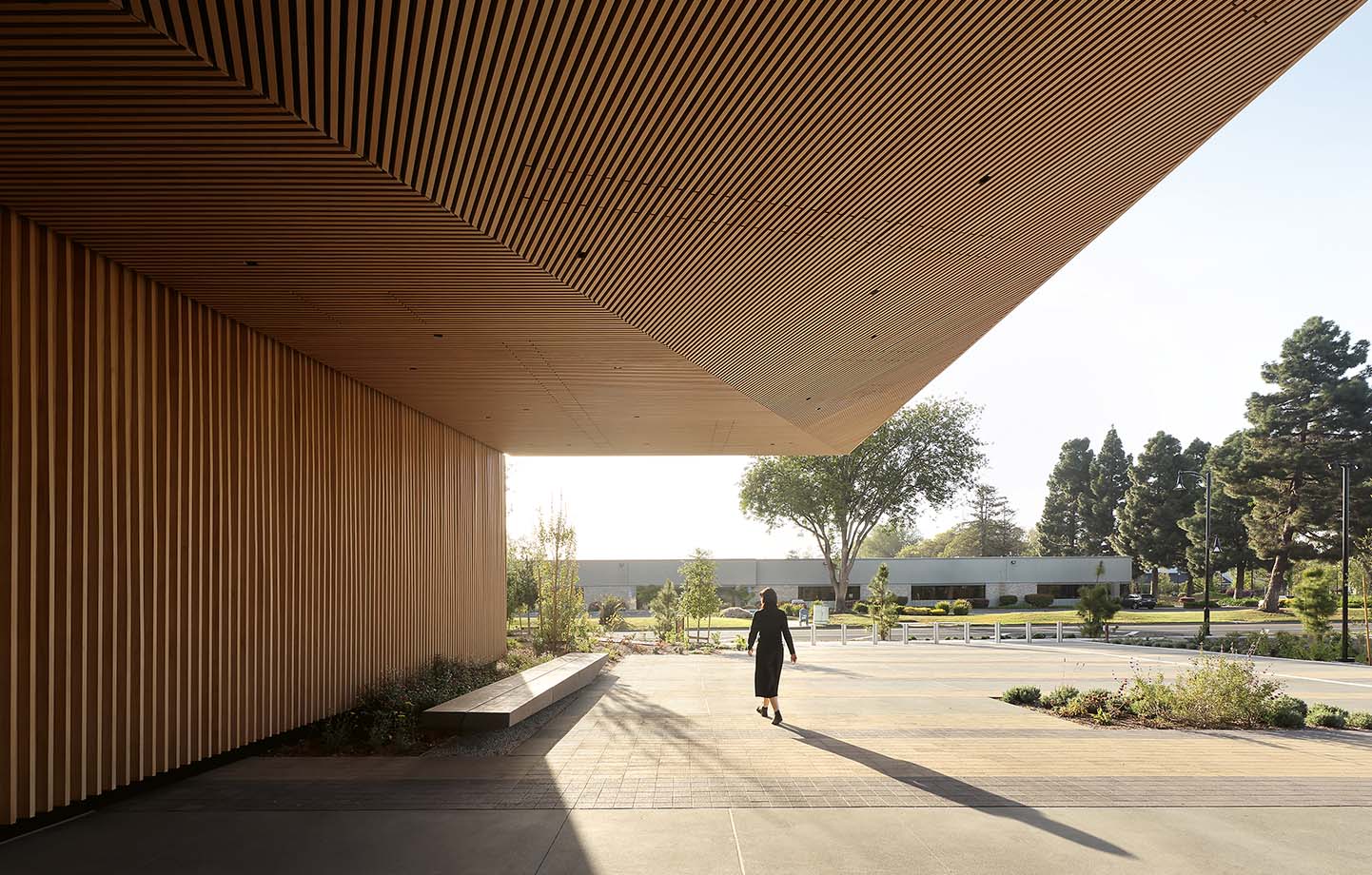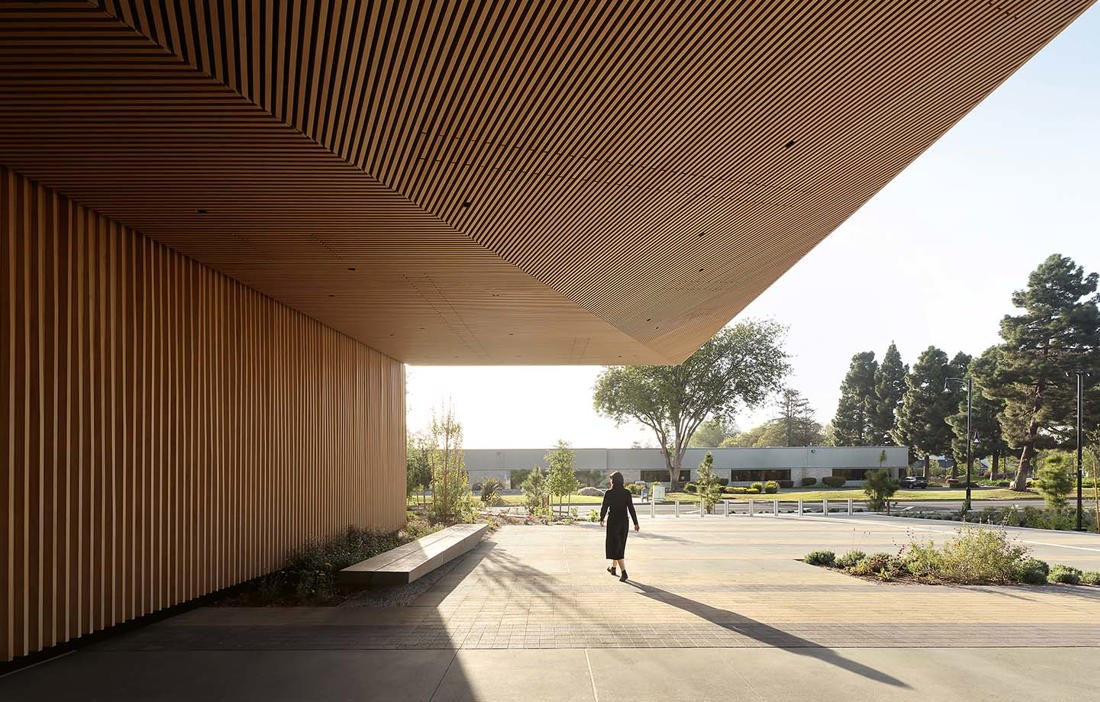 In addition, several other measures were taken to save water and energy, including efficient stormwater management systems and the use of recycled water for outdoor irrigation. The seaside location of Sunnyvale, which is in San Francisco Bay, also meant designing the surrounding landscape so that water cannot flood in during storm surges.