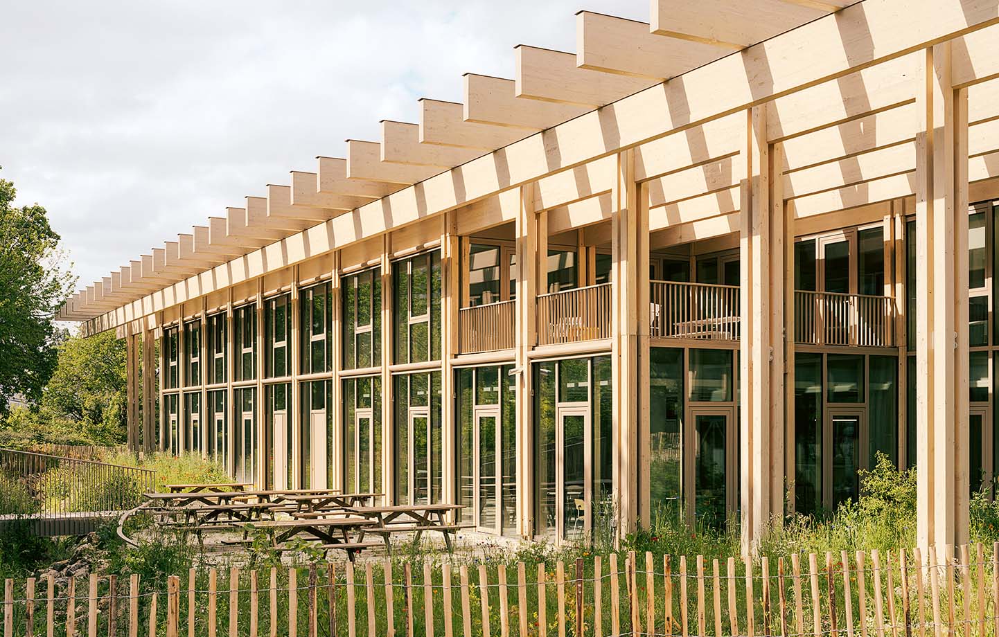 ARTICLE Impressive pavilion with resource-efficient columns, a green roof and ingenious solutions that blend in with nature.