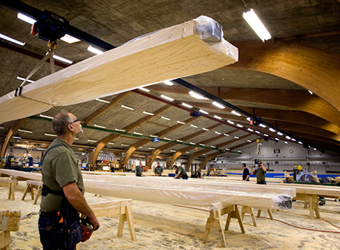 When using plywood, it is worth noting that the panels are usually stiffer and stronger in one direction. Its structure means that plywood can be sawn into any shape. Plywood is usually glued together with phenolic resin, which is essentially a water-resistant adhesive. Plywood can therefore be used for concrete formwork and for façades, roofs, boats and caravans.