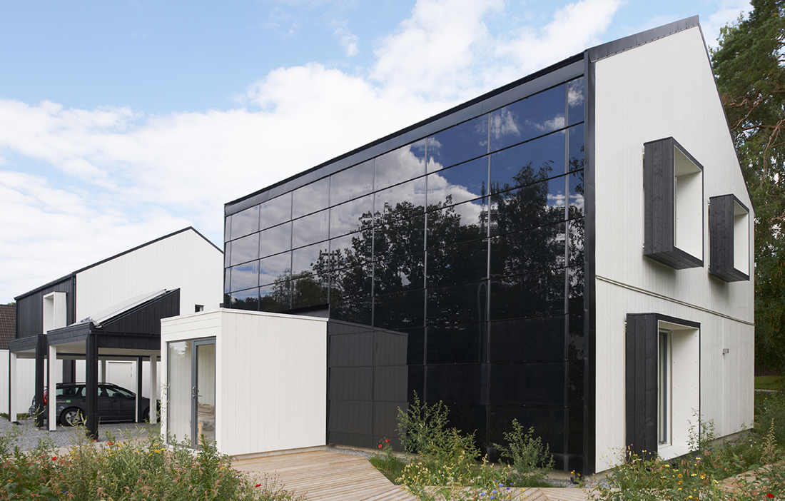 One Tonne Life is a prefabricated wooden house that aims to bring the environmental impact of its residents down to a lower level than any other house. The building is constructed entirely in wood – structural frame and surfaces, inside and out. The compact house has solar cells installed on all south-facing surfaces. This gives the architecture a strikingly closed look, balanced by rectangular glazing, mounted in protective wooden reveals. The reveals are designed to screen off the heat of the high summer sun, but let in the low winter sun.