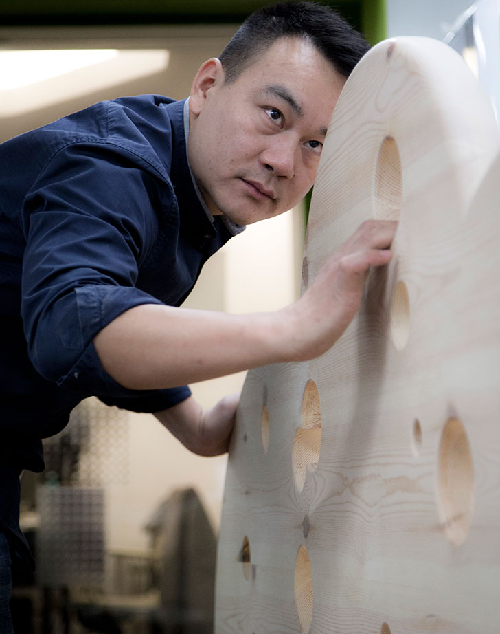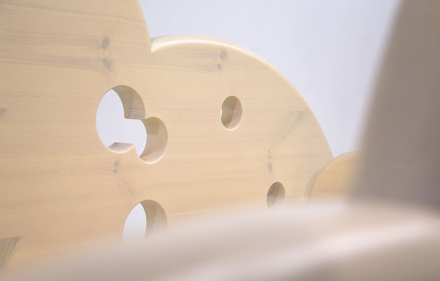 Xu Ming thinks Swedish pine is warm, approachable and suitable for daily-used or children’s furniture. He also thinks Swedish pine is firm, stable and easy to process. So he could design some bold shape.