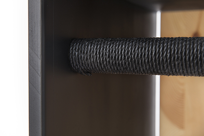 The rigging on a ship, where ropes are tightly wrapped with hemp to prevent chafing, inspired the design of the clothing rack and the legs of the closet.