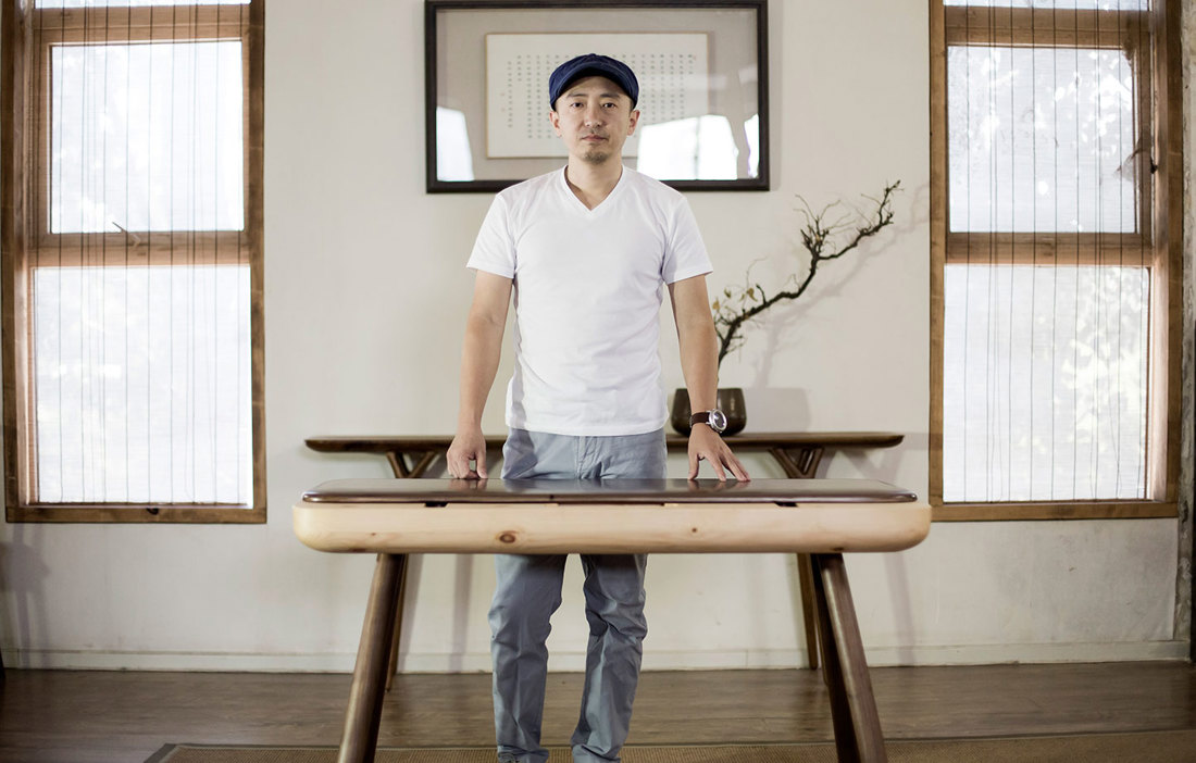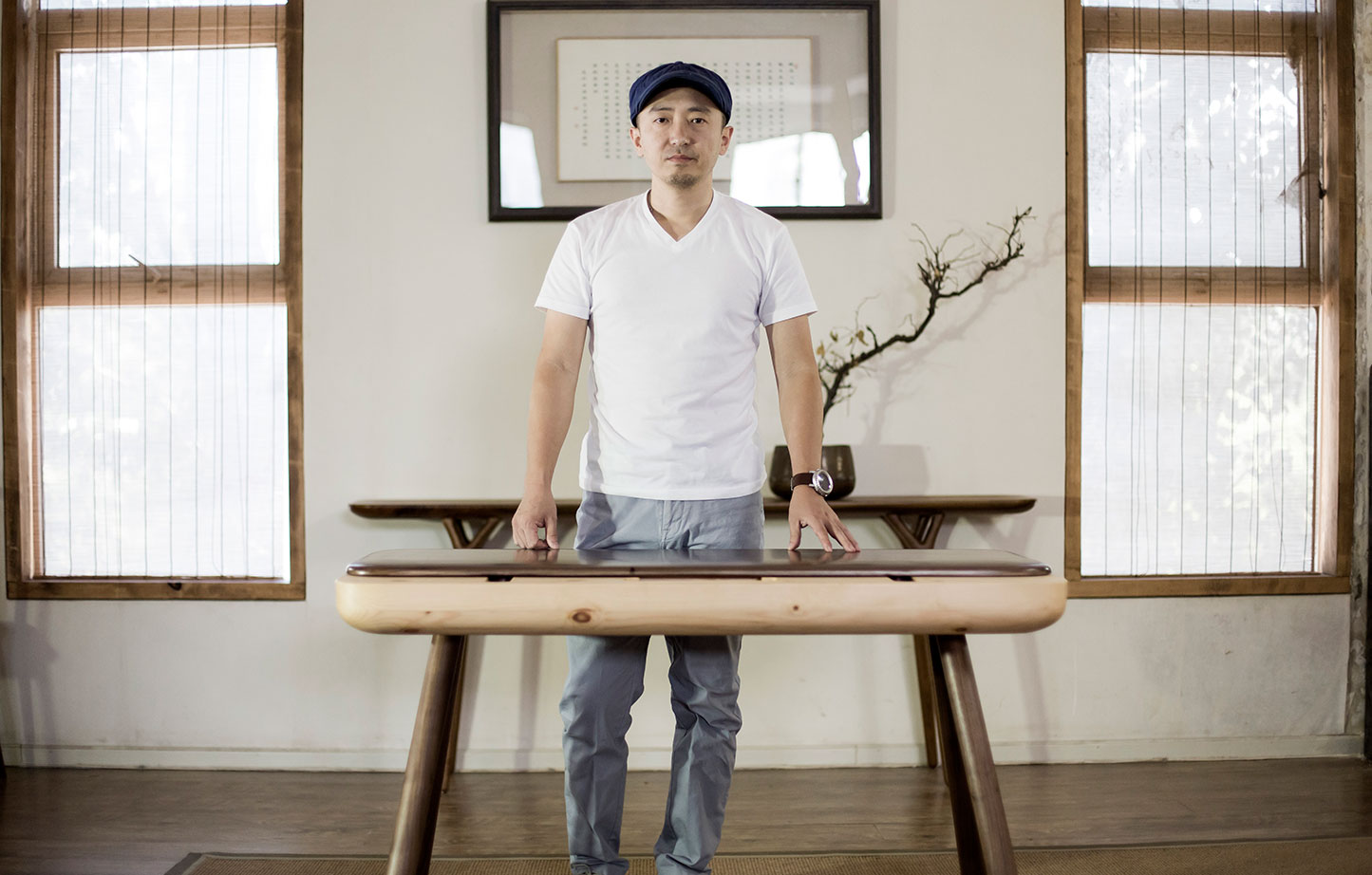 Wu Wei’s designs riff on traditional forms, integrating classic techniques with contemporary aesthetics. He uses furniture to tell a story, with Chinese tradition as the starting point. As with many woodworkers, Wu Wei is in awe of the special qualities of wood, calling it an “emotional, viable material,” and especially values handcrafting. Indeed, Thruwood is one of the rare independent brands where the designers still create largely by hand.
