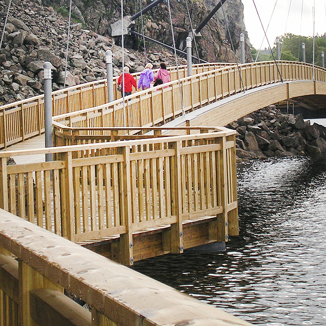 Building large wooden bridges is a trend that has grown rapidly. Wooden bridges tolerate aggressive environments well and retain their properties over a long time.