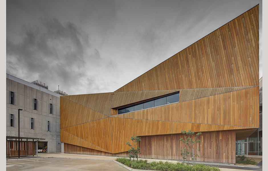 The wood used for the building, both internally and externally, is Australian Spotted Gum and Pacific Teak. Pacific Teak is particularly hard-wearing, making it able to handle all the climatic challenges that the building is subjected to on the coastal site of the university’s Innovation Campus. Clinton Murray already has considerable experience in working with wood.