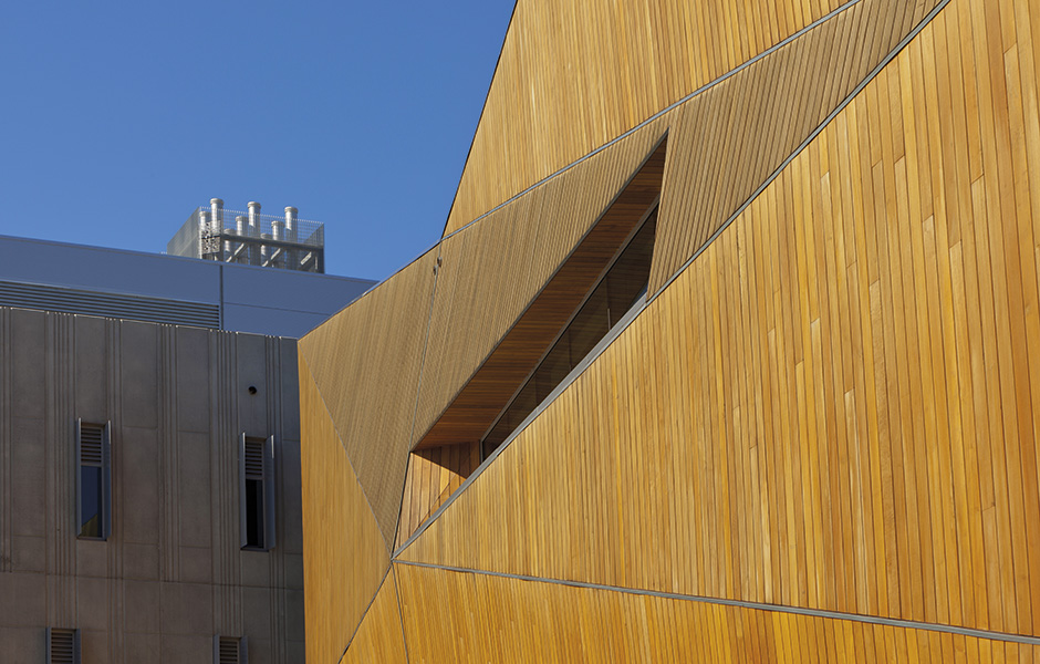“The aesthetic was extremely important. We wanted people to be interested in the building, to be drawn to it, prompting them to think and sparking conversations about what goes on inside. At the same time, we wanted the wood facade to have some kind of connection with the research. Since nanoresearch is about studying the world’s very tiniest details, the notion of ‘details’ became key when building the facade. Moving inside, the structure, colour and even the scent of the wood also create a pleasing and vibrant contrast to the stainless steel of the laboratories,” says Clinton Murray.