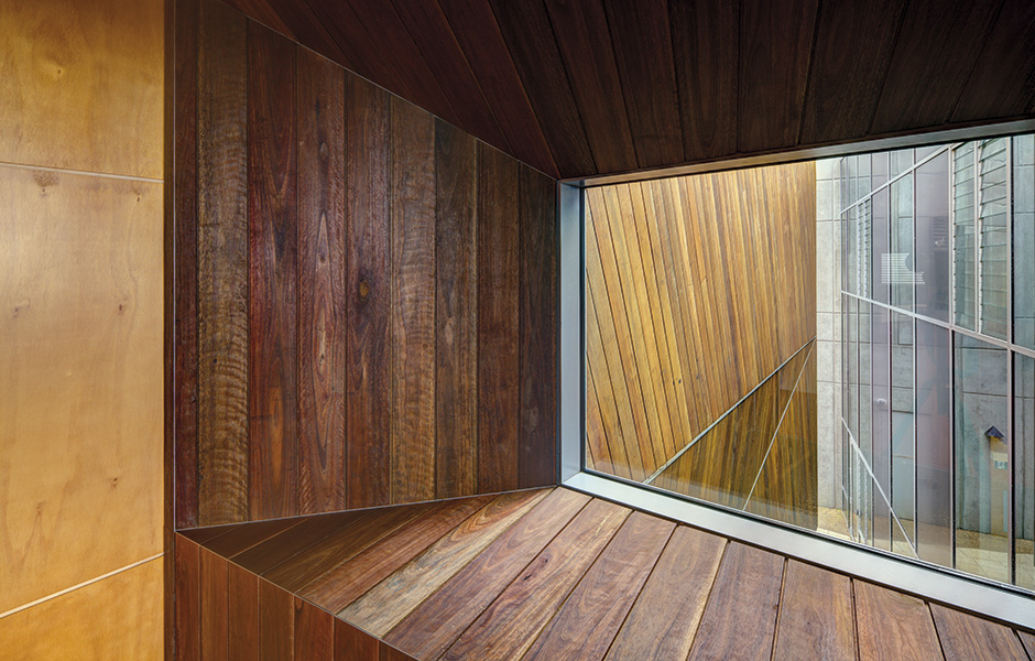 “I’ve worked a lot with wood in the residential projects I’ve designed. If I can, I try to use recycled timber. In the majority of buildings, I prefer to leave the wood untreated, because it actually doesn’t need treating, but in this particular case the university required us to apply some sort of external protection. That’s why we painted it with a treatment that has to be repeated every three or four years,” says Clinton Murray.