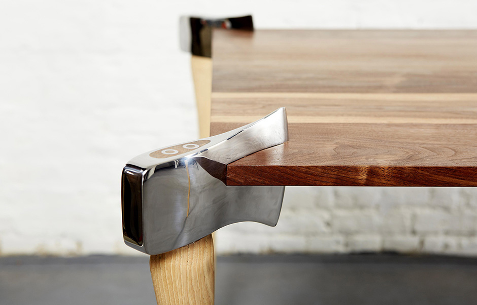YOU DON’T NEED to worry about the Big Bad Wolf with a table like this at home. Little Red Riding Hood, the dark fairytale by the Brothers Grimm, was what inspired the creatives at the design studio Duffy London to come up with the ‘Woodsman Axe’ table concept. They describe the creative process as playing with gravity, geometry and illusion. The result is an artistic and fully functional table that is now in production in three different versions – dining table, console table and coffee table.
