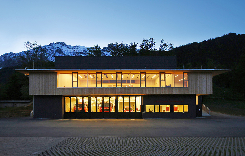 WHAT BETTER ILLUSTRATION of wood as a fire-resistant material than using it to build a fire station? Gsottbauer architects have built their modern take over two floors and clad the facade in silver spruce, giving a look that is typical of buildings in the rural parish of Gnadenwald in Austria.
