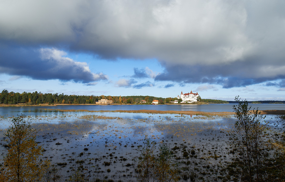 WITH GREAT SELF-CONFIDENCE, Läckö Castle looms over its surroundings in the unique natural and cultural landscape of Lake Vänern. With all its pinnacles and towers, the edifice stands enthroned on a plateau like a fairytale castle, overlooking the dark waters of the lake. The castle has dominated this site since the 17th century. However, just over a year ago the Baroque building gained some competition, when Naturum Vänerskärgården–Victoriahuset became its new neighbour. In terms of size, this visitor centre is overshadowed by the castle, but it still manages to make its presence felt. It is, after all, a large building of 1275 square metres sitting prominently in the open landscape – and the architecture certainly draws the eye.