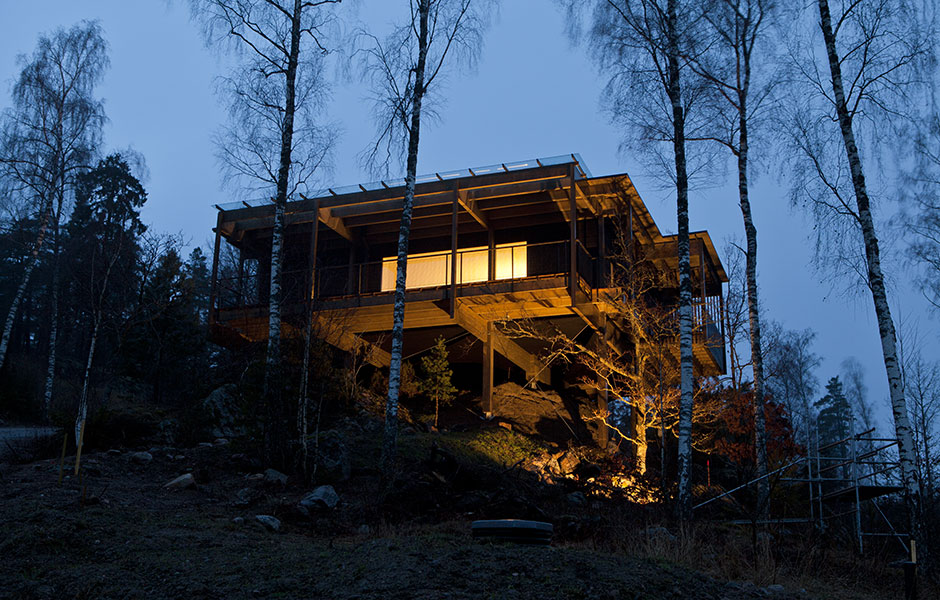“We wanted to create an eco-home, so the obvious choice was to use wood. Glulam is also better at resisting fire. If a forest fire was to rage under the houses, it would take a long time for the stilts to fail,” states Erik Hedenstedt.