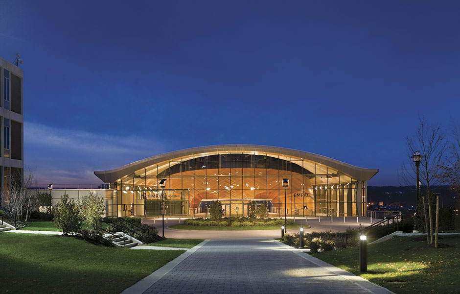 EMPAC (THE EXPERIMENTAL Media and Performing Arts Center) is a large cultural centre measuring almost 20,000 square metres. The brains behind the building, the Grimshaw architectural practice, have received several awards for their design. The building embodies a number of design and structural innovations. For one thing, an air of peace has been achieved through acoustic separation, which means that a gap has been left open between the walls and in the floors separating all the spaces. This prevents the transmission of sound and vibrations. To further dampen vibrations, parts of EMPAC sit on springs built into the ground.
