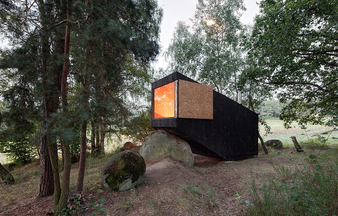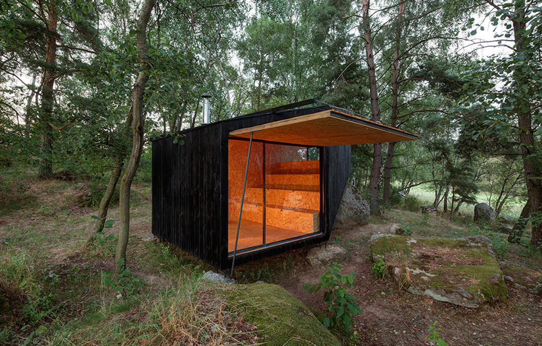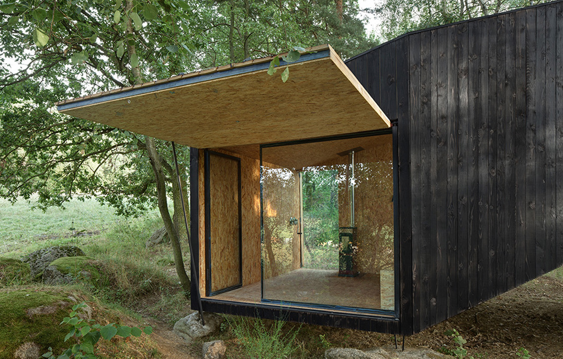 SAY »CABIN IN the woods« and many will think of a Hansel and Gretel-style log cabin. That is not the case in the Czech region of Bohemia. Here Uhlík Architekti has created a modern escape for stressed Prague residents who want to get away in modern style.