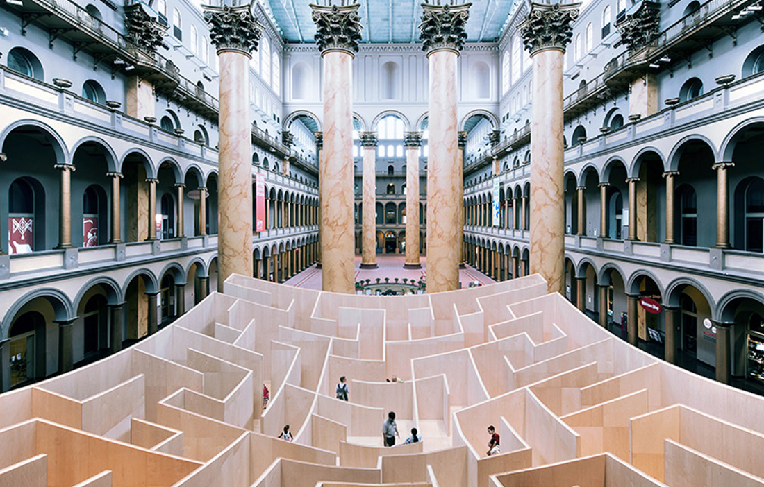 DURING THE YEAR, Danish architect Bjarke Ingels’ 335 square metre wooden labyrinth has been on display at the National Building Museum in Washington. The project is called the BIG Maze.