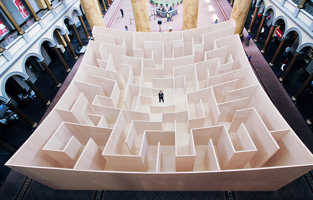 The labyrinth and its visitors could also be viewed from the first and second floors of the museum, which added a further dimension to the creation.«