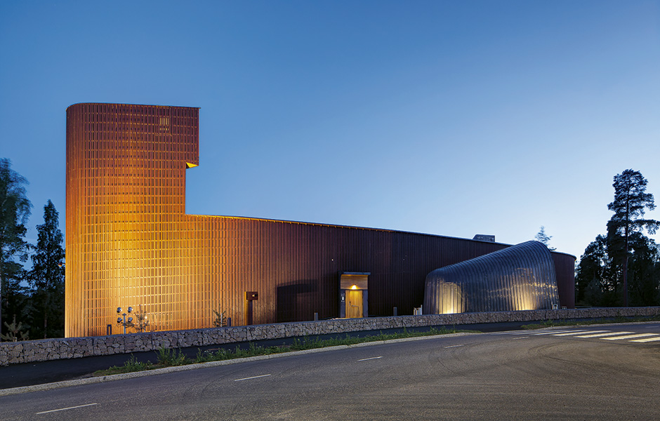 The key role of the bird in Finnish folklore was an inspiration in creating the Haltia visitor centre. When designing the building, Lahdelma & Mahlamäki took as their starting point the Finnish epic poem Kalevala’s saga about the duck that lays an egg containing the world. From a distance, Haltia looks like a huge brooding duck in wood that watches over the Finnish forests. The tower at one end is reminiscent of the bird’s neck. Inside the large hall in the building you can even see the mythical egg – here in a wooden structure that houses a video installation by Finnish artist Osmo Rauhaia. Since Haltia opened in May in 2013, it has held a collection of all the finest Finnish nature, from the archipelago environments in the south to the mountain peaks of Lapland, within easy reach of nearby Helsinki.