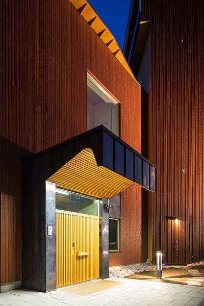 “The slope did impose some constraints on us, but for an architect that can often form a creative starting point. The only real problem with the slope was that we were forced to limit the use of wood to a certain extent, since the sloping ground required concrete to stabilise the building,” says Rainer Mahlamäki.