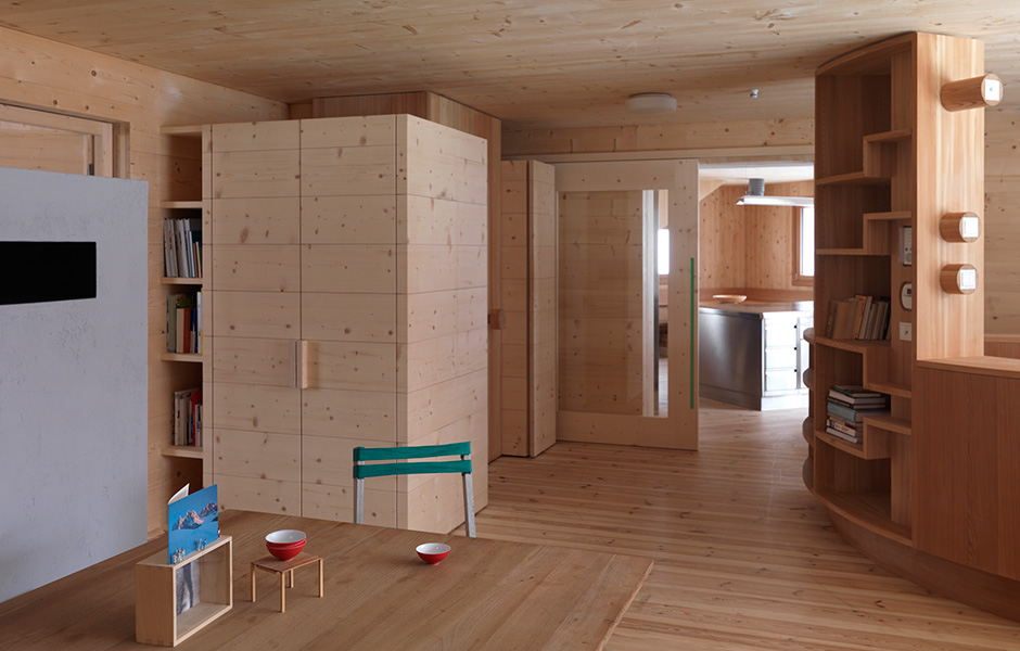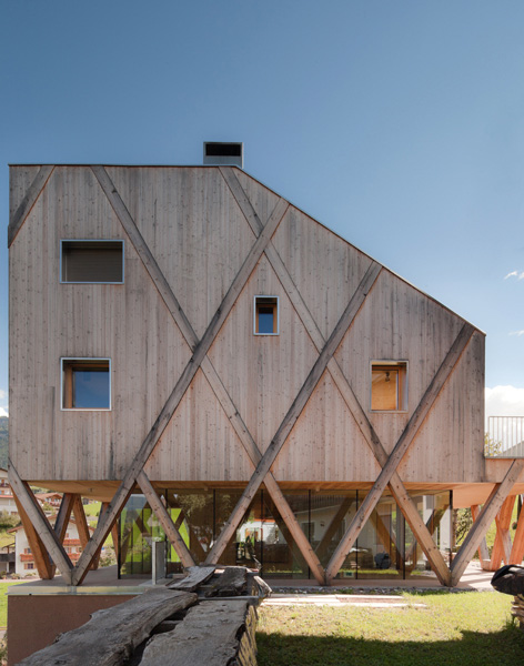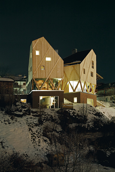 The 600 square metre house took four years to build and was completed in 2013. There is a trend for increasingly modern buildings in the otherwise traditional Alps, according to the architects, who also feel that this building transforms a private dwelling into a landmark with spectacular effect.«