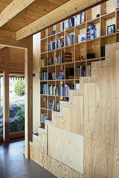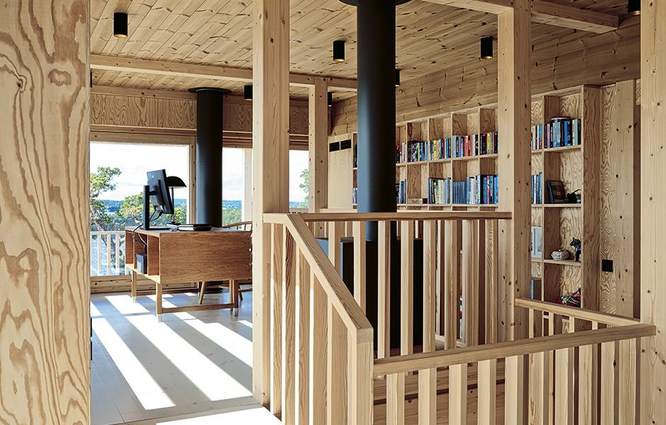 Glulam pays a very prominent role in the feel of the house, since the design has a visible structural frame. Every joist, every beam is visible. However, the exposed frame accentuates the labyrinthine feel, creating rooms within rooms and emphasising functions – defining the kitchen, for example. It also contributes to the atmosphere and lends warmth to the house.