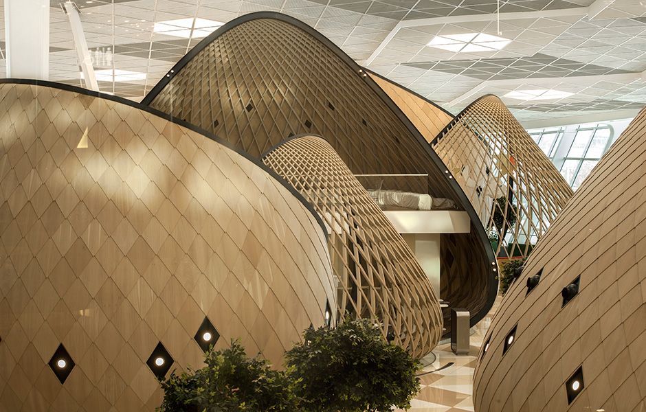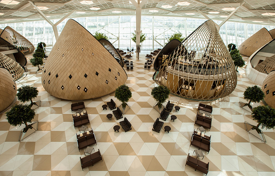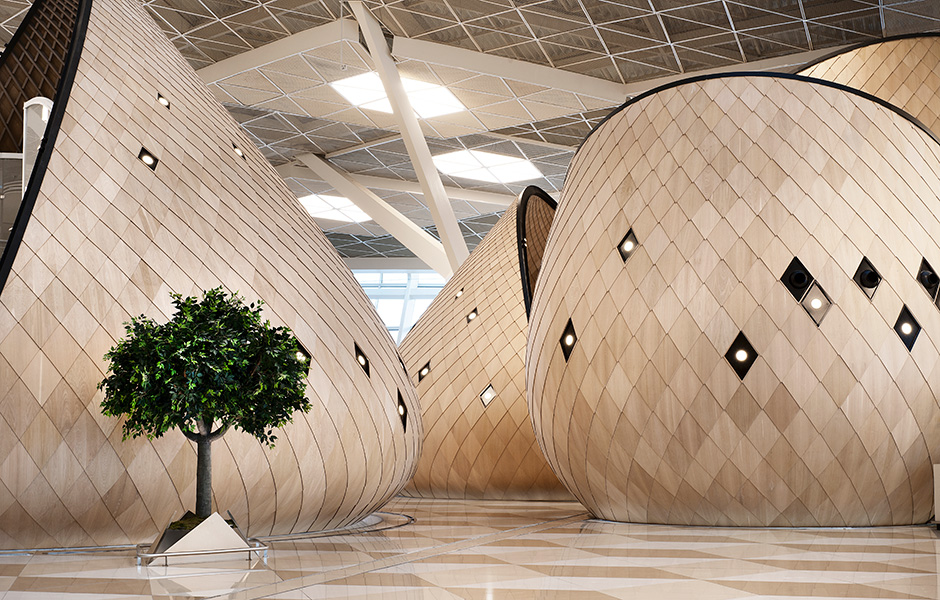EACH YEAR, 6 million travellers pass through Heydar Aliyev International Airport in the Azerbaijani capital of Baku. Now, as they enter the airport, travellers are met by 16 cocoons made from interwoven panels of oak plywood.