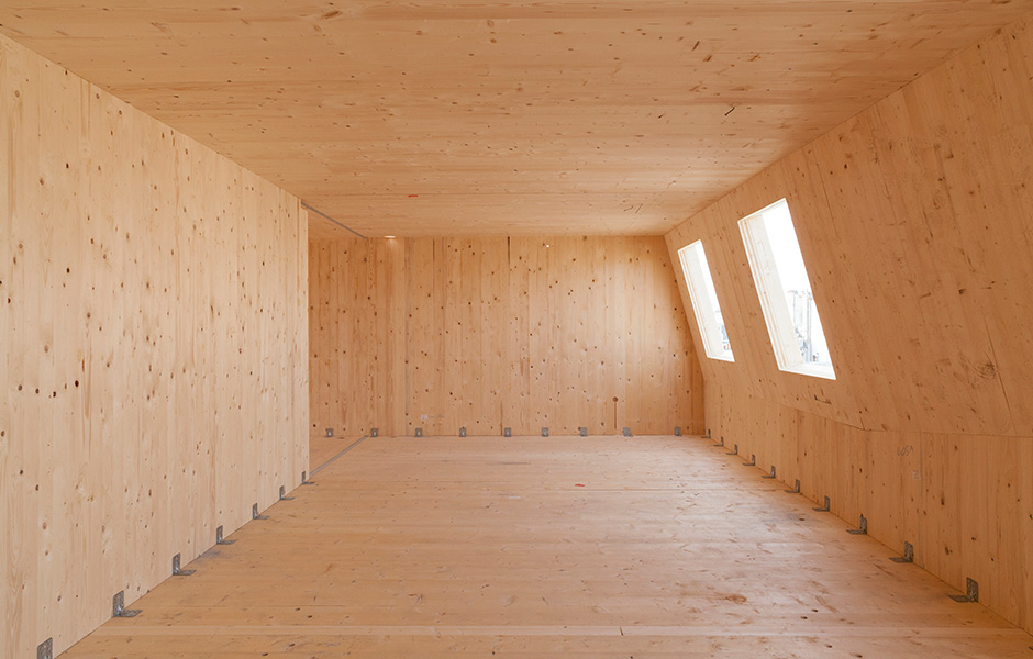 “Using CLT made the first stage of construction exceedingly efficient, so we were able to put up the building’s structural frame quickly. This was important since site access was difficult and we had very little space to work in. It also meant we had a clean construction site with little building dust and low carbon emissions,” outlines Jean-Thibaut Bernard.